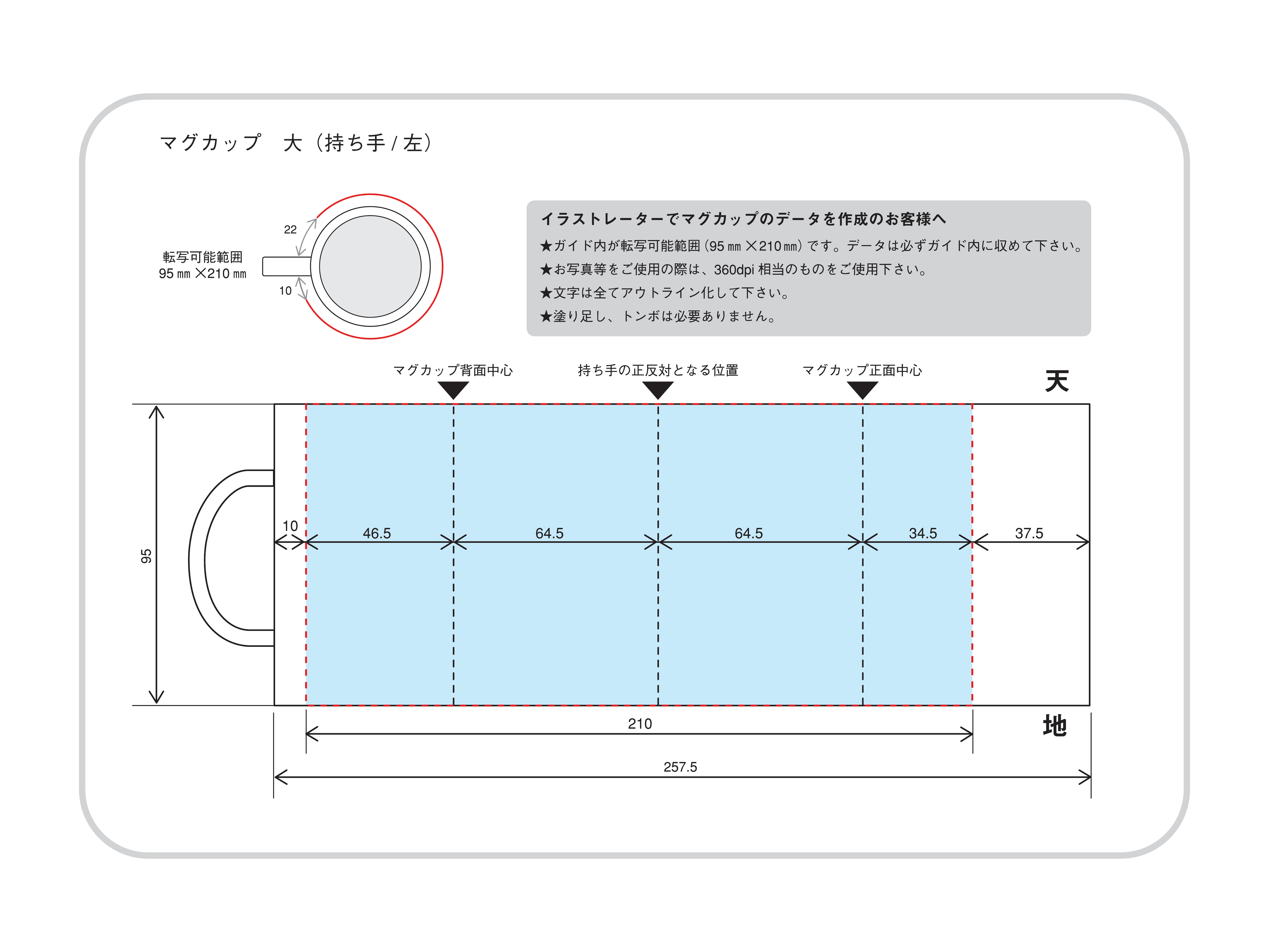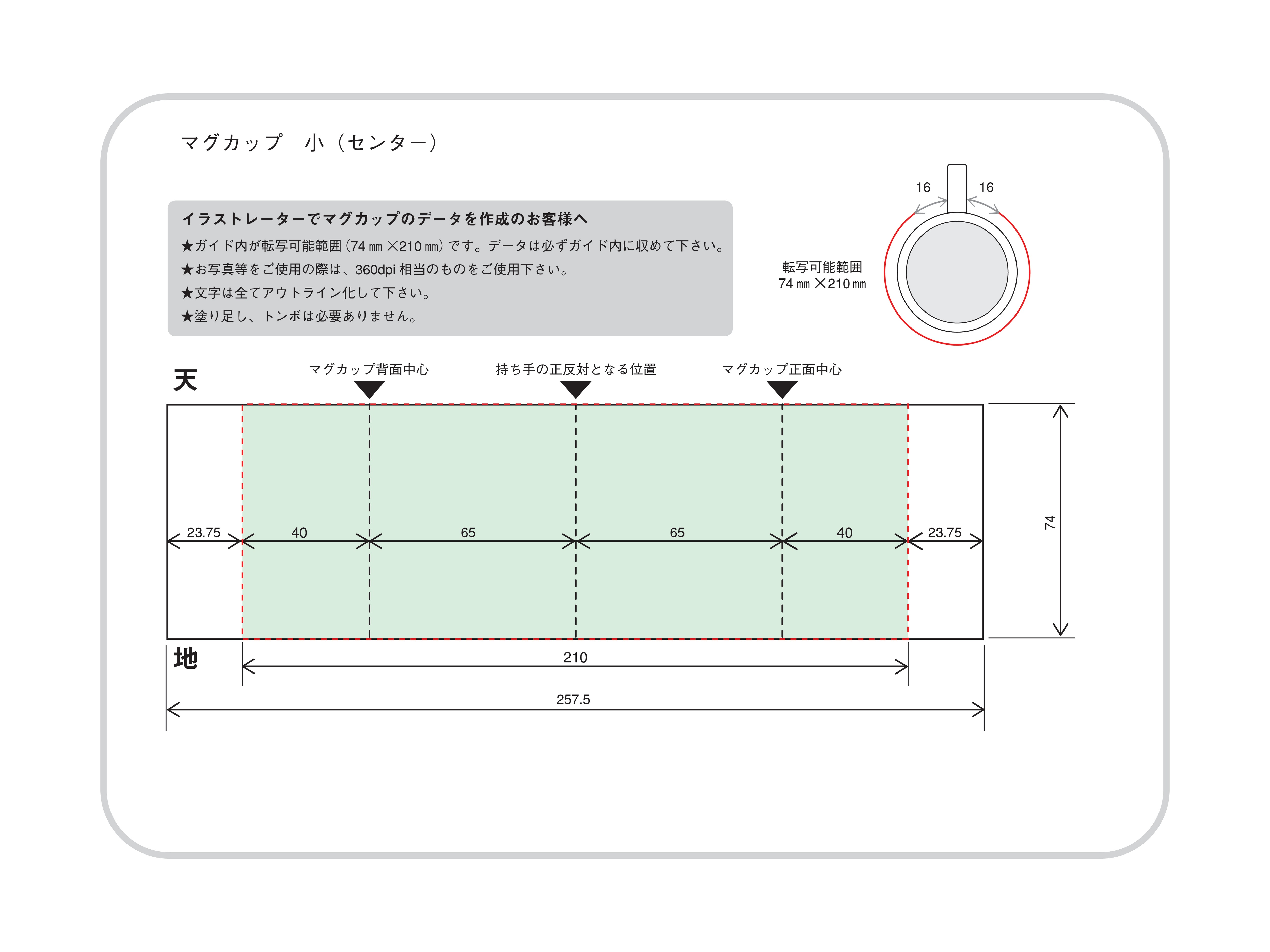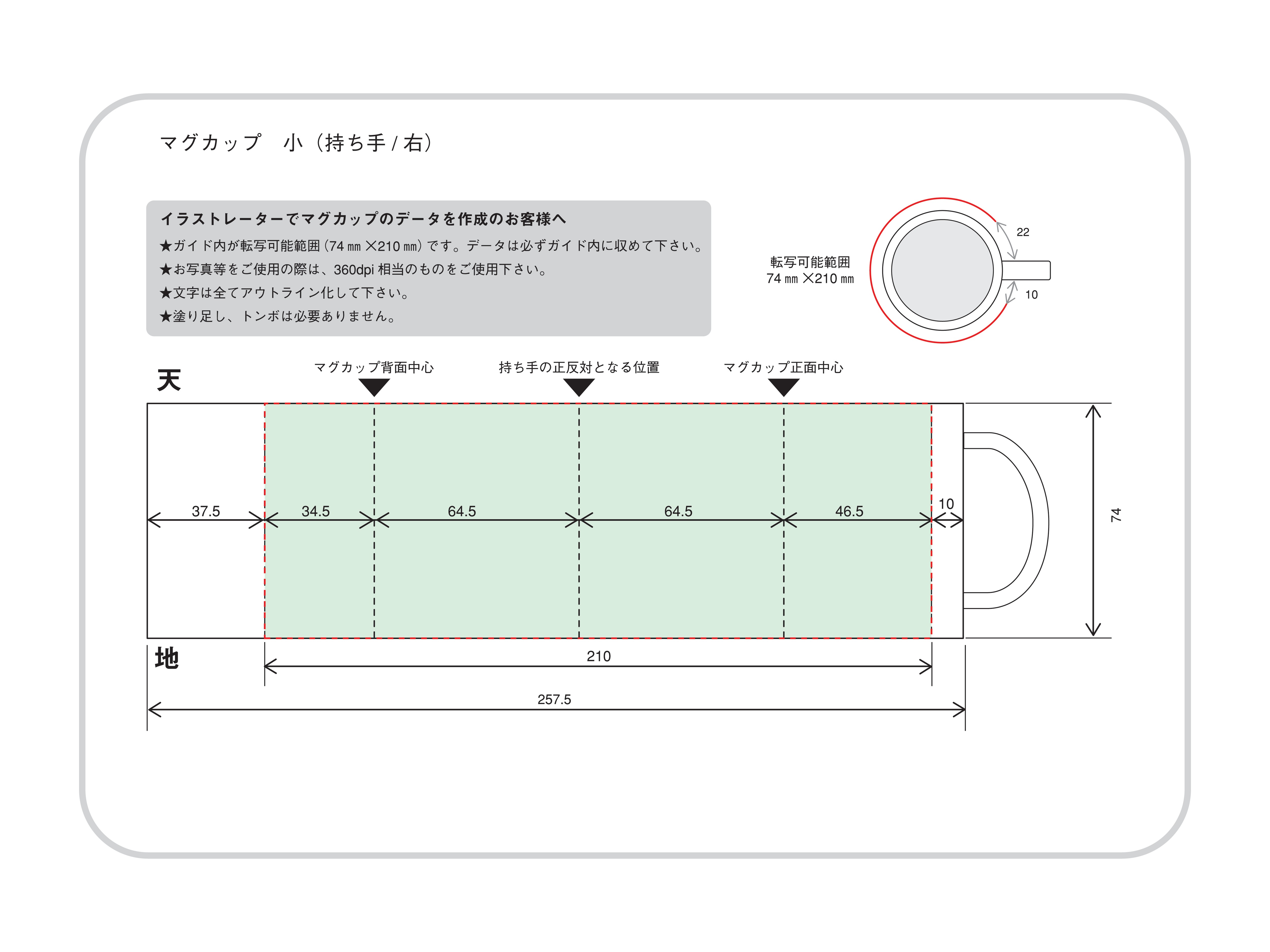 各マグカップのデザインテンプレートです。以下のテンプレートをご利用ください。イラストレータをお持ちのお客様は、AIアイコンをクリックするとテンプレートがダウンロードできます。JPEGのテンプレートをご使用のお客様は、JPEGアイコンをクリック後、画像を保存しご利用ください。