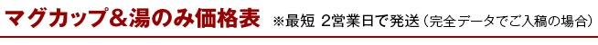 「マグカップ・湯呑み」すべて統一料金(外税)です。