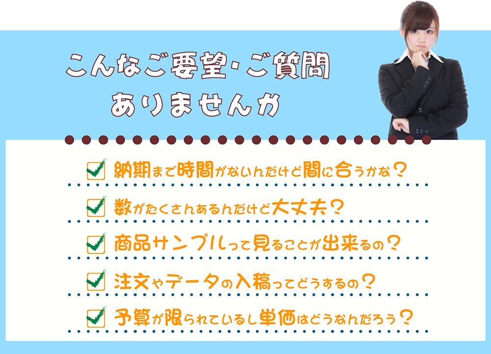 予算内でのノベルティ作成など臨機応変な対応が可能です。